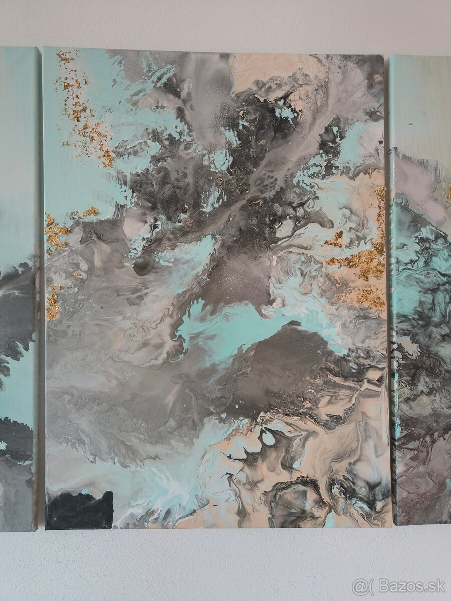 Originálna maľba, akrylová farba, modrá, sivá, zlatá.