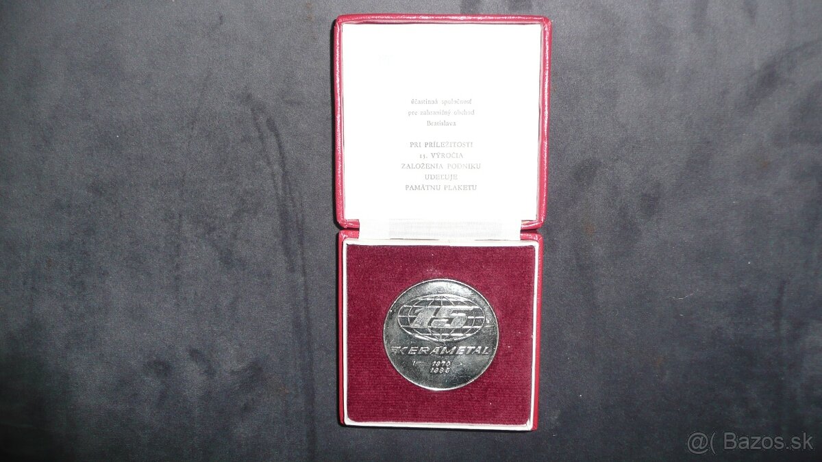 Predám plaketu: 15.výročie Kerametal 1970-1985. Cena: 3 eurá + poštovné