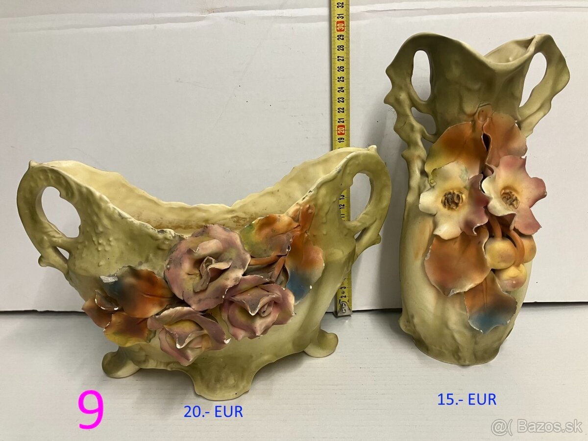 9 - Keramická misa a váza a misa ručne maľovaná, S plastickým veľmi dekoratívnym portálom, vo veľmi dobrom stave-viď foto. Cena: 15 + 20.- EUR.