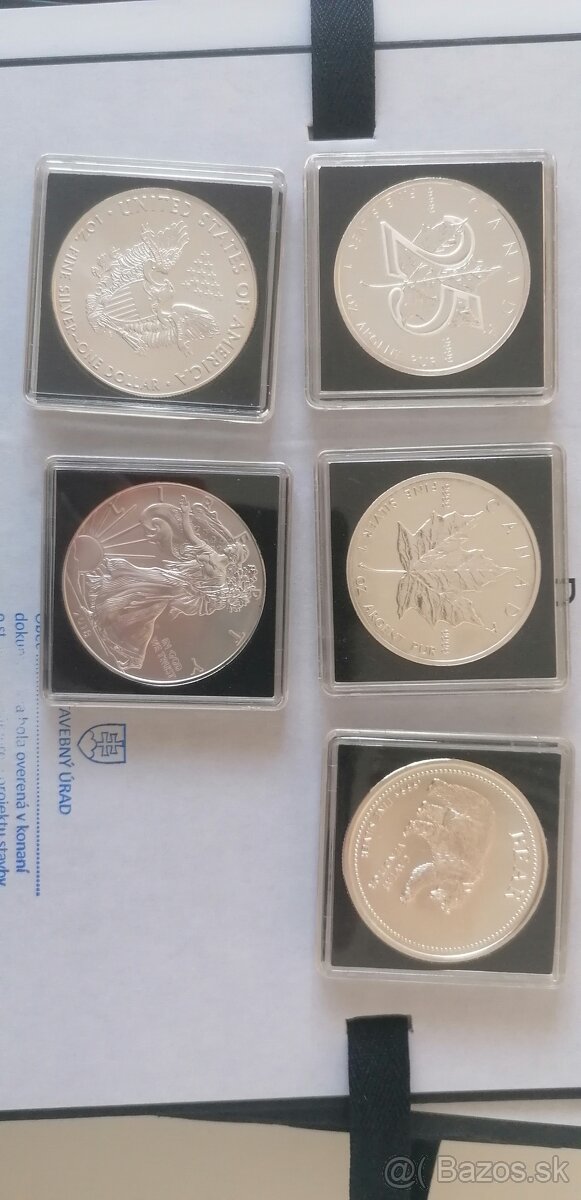 Na predaj je 5 mincí na fotke + 1 minca philharmoniker. Všetky mince sú čisté striebro 1 oz