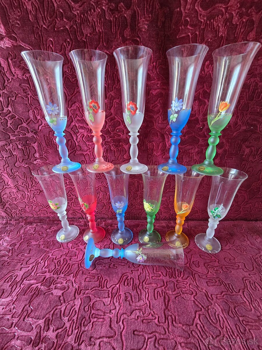 Poháre na šampanské 12ks, ručná maľba. Ak nie je možný osobný odber, posielam poštou. Pri kúpe nad 30eur a platbe na účet poštovné zdarma. Balím spoľahlivo. KLIK NA MOJ NICK.