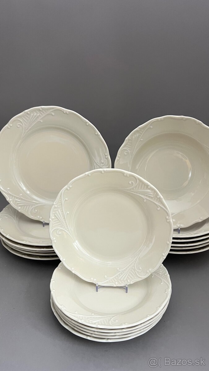 Predám novú tanierovú súprava pre 6 osôb. Nemá žiadne poškodenie. Jedná sa o starorolský porcelán Moritz Zdekauer. Porcelán je vo farbe slonová kosť a nieje značený. Je vhodný do mikrovlnky a umývačky riadu.
