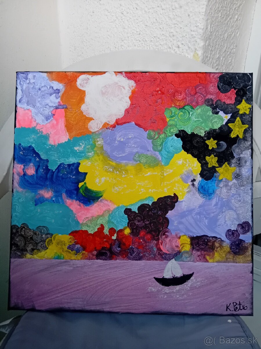 Predám mnou namaľovaný obraz maľovaný akrylovými farbami na plátne. Tento obraz som pomenoval Rozbúrené more a je vyjadrením mňa v danej chvíli.