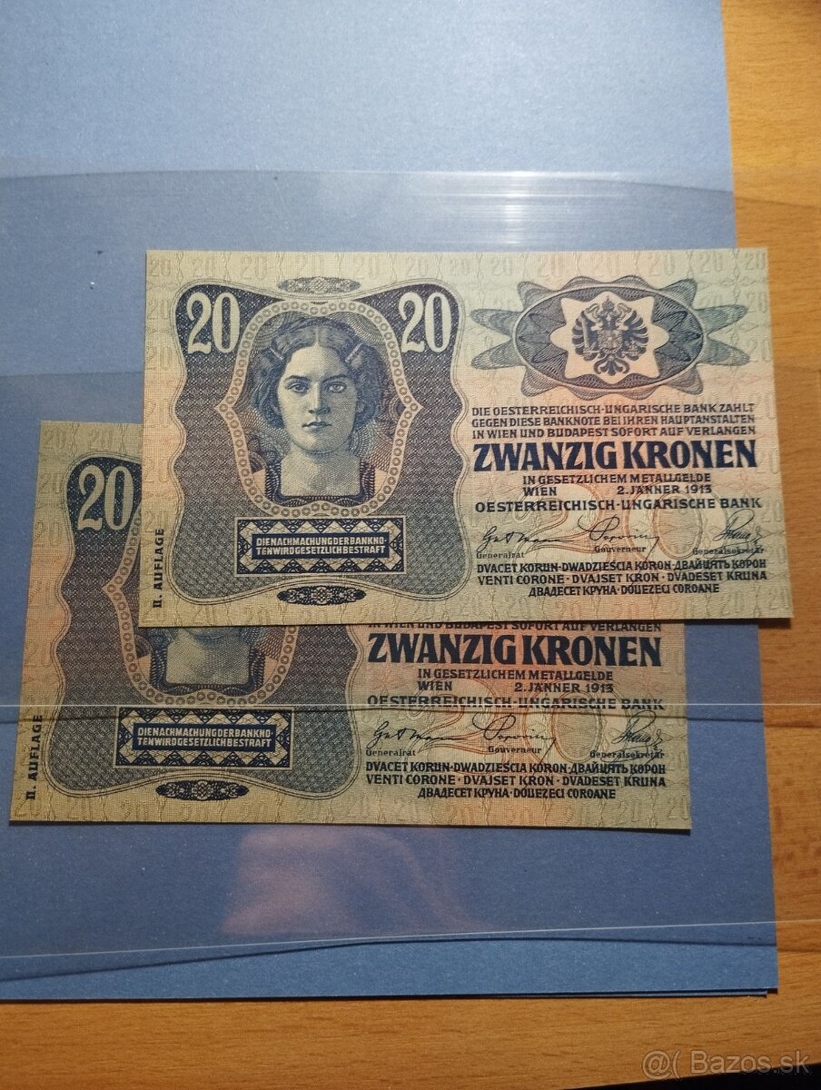 Predám 2ks 20k 1913 II.vydanie v UNC stave v krásnej postupke.Cena 300€+pošta.