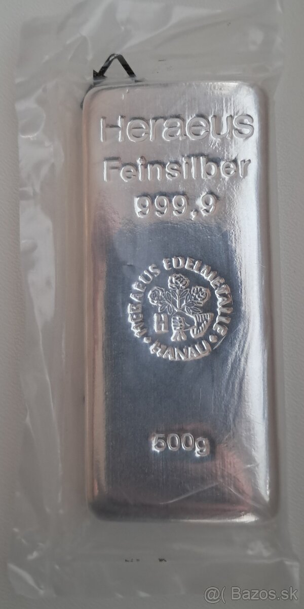 Investičné striebro Heraeus 1000 g - [1.3. 2026]Predám striebornú investičnú tehličku Heraeus 999,9 Ag ( investičná strieborná tehlička, strieborná tehla ), k tehličke je pokladničný doklad. Na SMS neodpovedám.