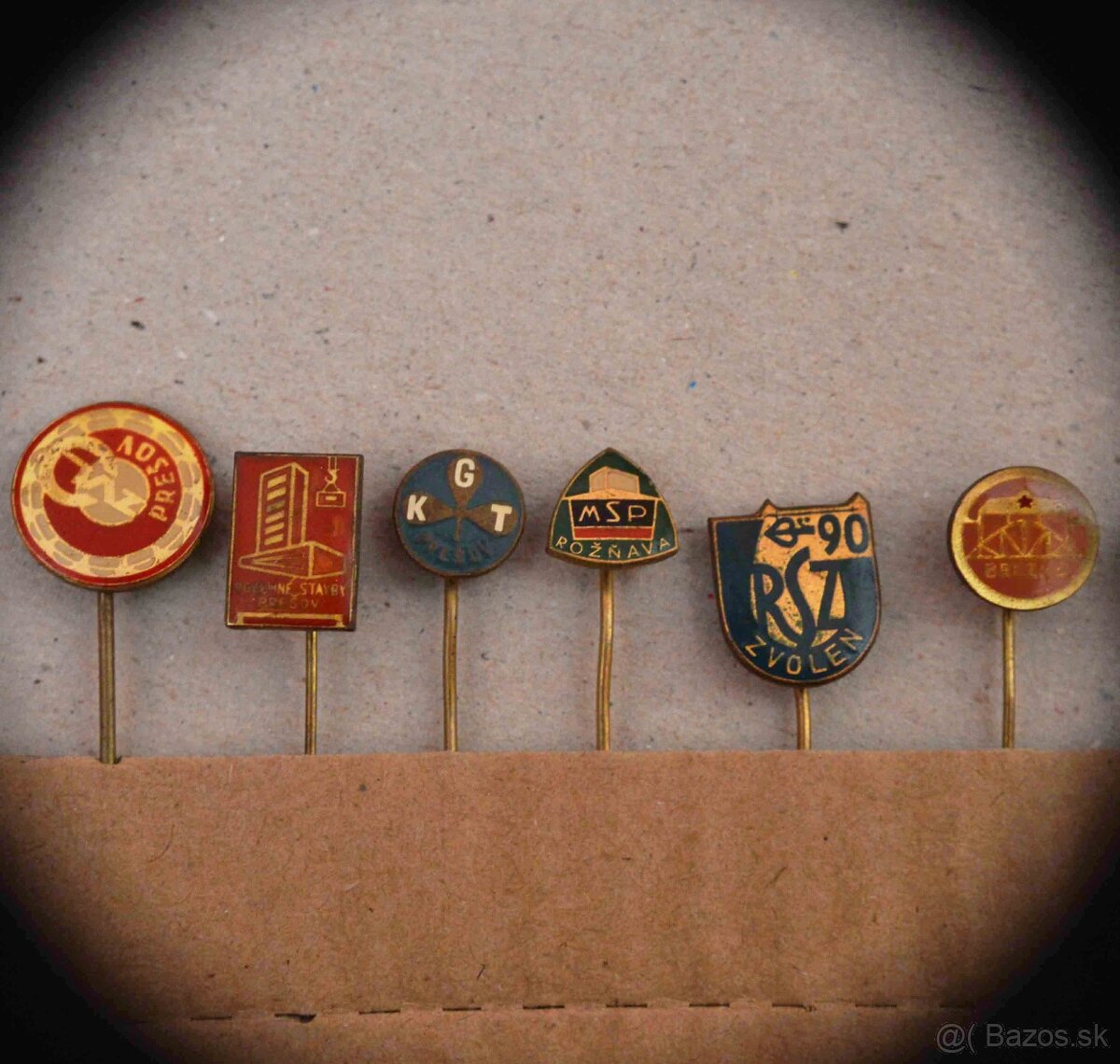 Retro odznačiky, smaltované z rôznych miest a starých podnikov (ZVL, Bukóza, PS..),