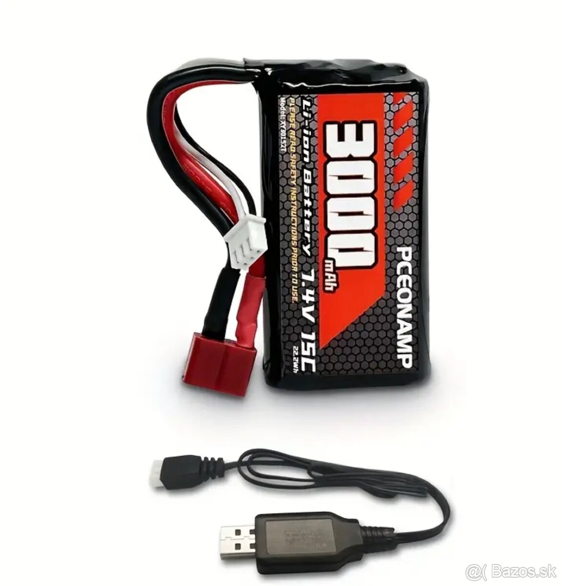 Baterie PCEONAMP 7,4V 3000mAh 2S s 2 USB nabíjačkami - Vysokokapacitná nabíjačná bateria pre RC autá a nápravy veľkosti 1/10, 1/12, 1/16, 18650 séria, 2S Li-ion bateria | Vysokokapacitná bateria | Odolná konštrukcia baterie, RC autá bateria