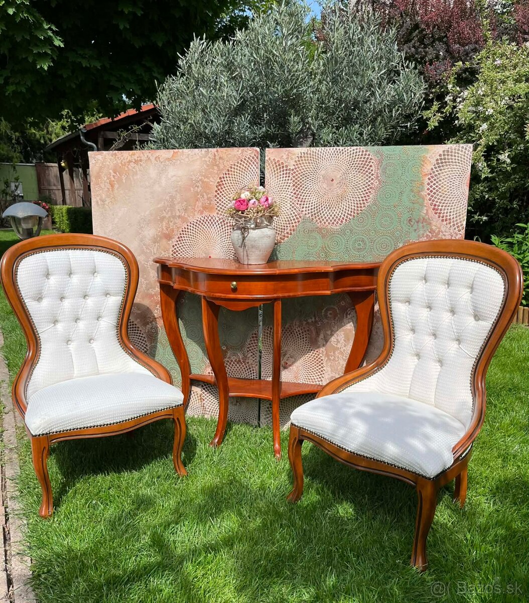 Predám set dvoch kresiel a stolíka Konzol. Skoro nové, málo používané.