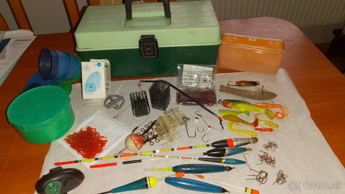 3ks,plaváky 8ks,bliskáče+umelé nástrahy na prívlač 8ks,umelé červy 2 balenia,háčiky.Predaj