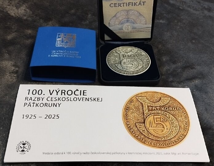 Strieborna medaila 100.výročie 5-Haliernika z roku 1924 - [5.2. 2026]Predám striebornú medailu 100.výročie razby Československého 5-Haliernika z roku 1924.