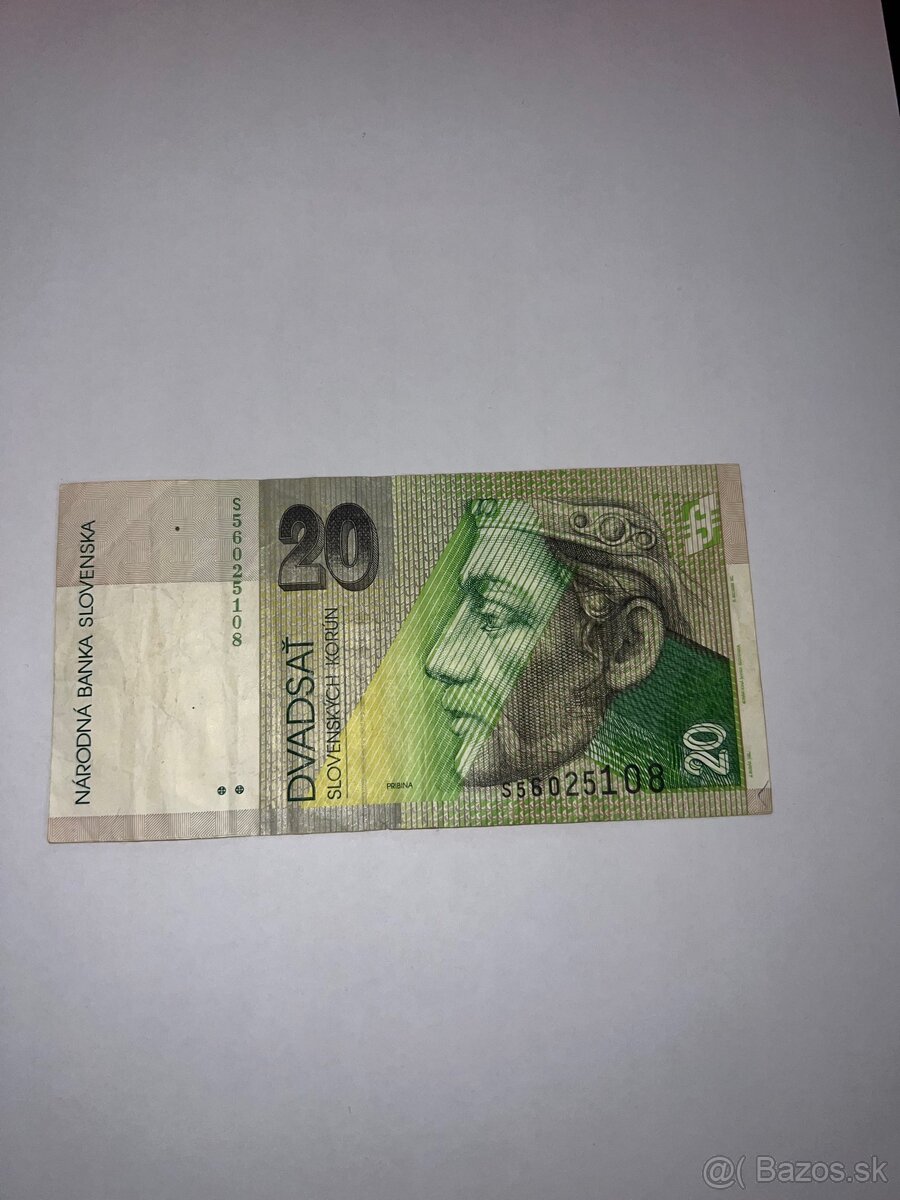 Predám bankovku 20 slovenských korún (Sk), originál z obdobia pred eurom.