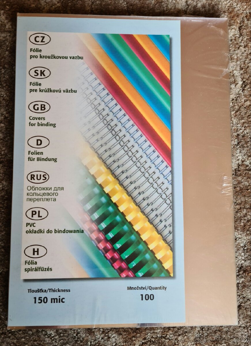 Predám nerozbalené fólie pre krúžkovú väzbu. 100 kusov v balení, hrúbka 150 mic.
