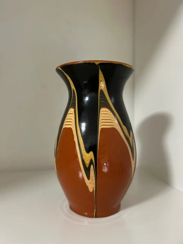 Stará hnedá keramická váza 14cm