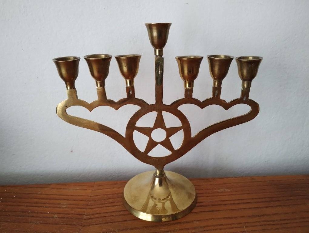 Stary mosadzny svietnik menora s hviezdou vysoky 18cm. Pozri aj dalsie moje inzeraty. Bratislava