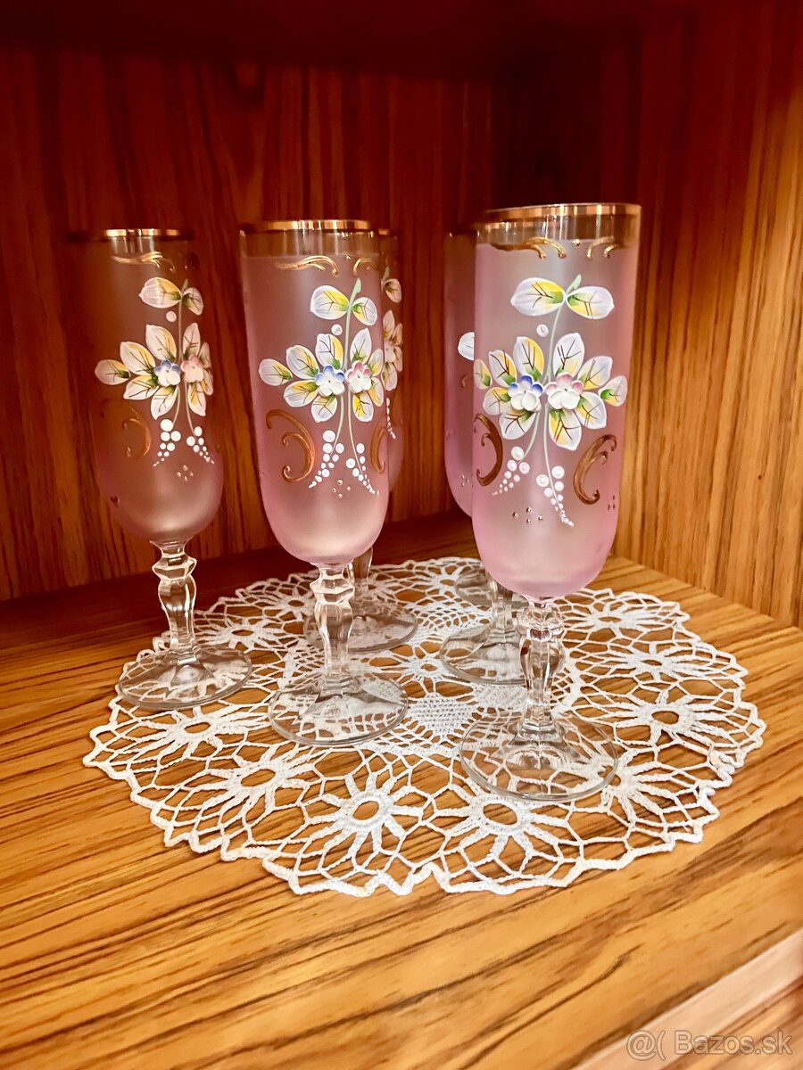 Slávnostné poháre - 6ks - [21.1. 2026]Predám retro vysoké poháre, vhodné napr. napr na šampanské. Bez poškodia, nepoužívané, vitrínový stav. Sada 6ks.