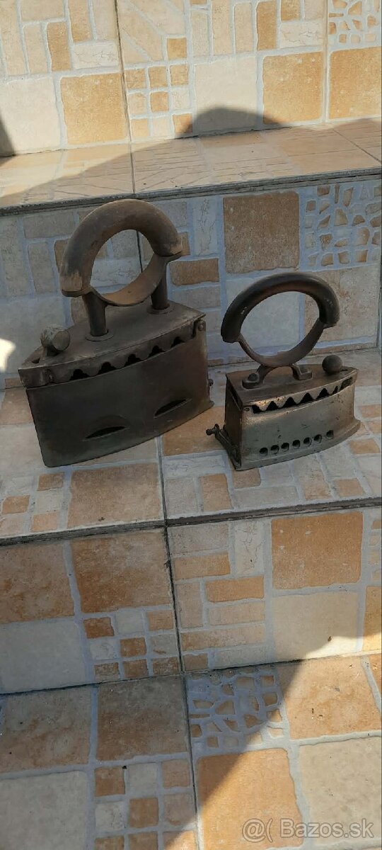 Predám starožitné žehličky na uhliky, malú za 20 e a veľku za 18 e