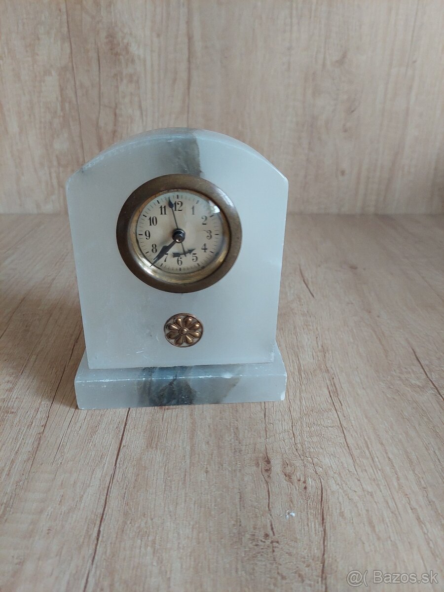 Predám starožitné hodiny. Materiál: mramor. Váha: 1630 g. Výška: 14,8 cm, šírka podstavca: 12 cm, hĺbka podstavca: 6,5 cm. Sú fuknčné.