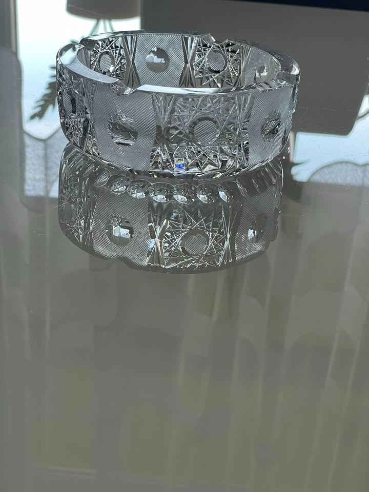 Krištáľový, brúsený popolník - V:5,cm / priemer 13, cm