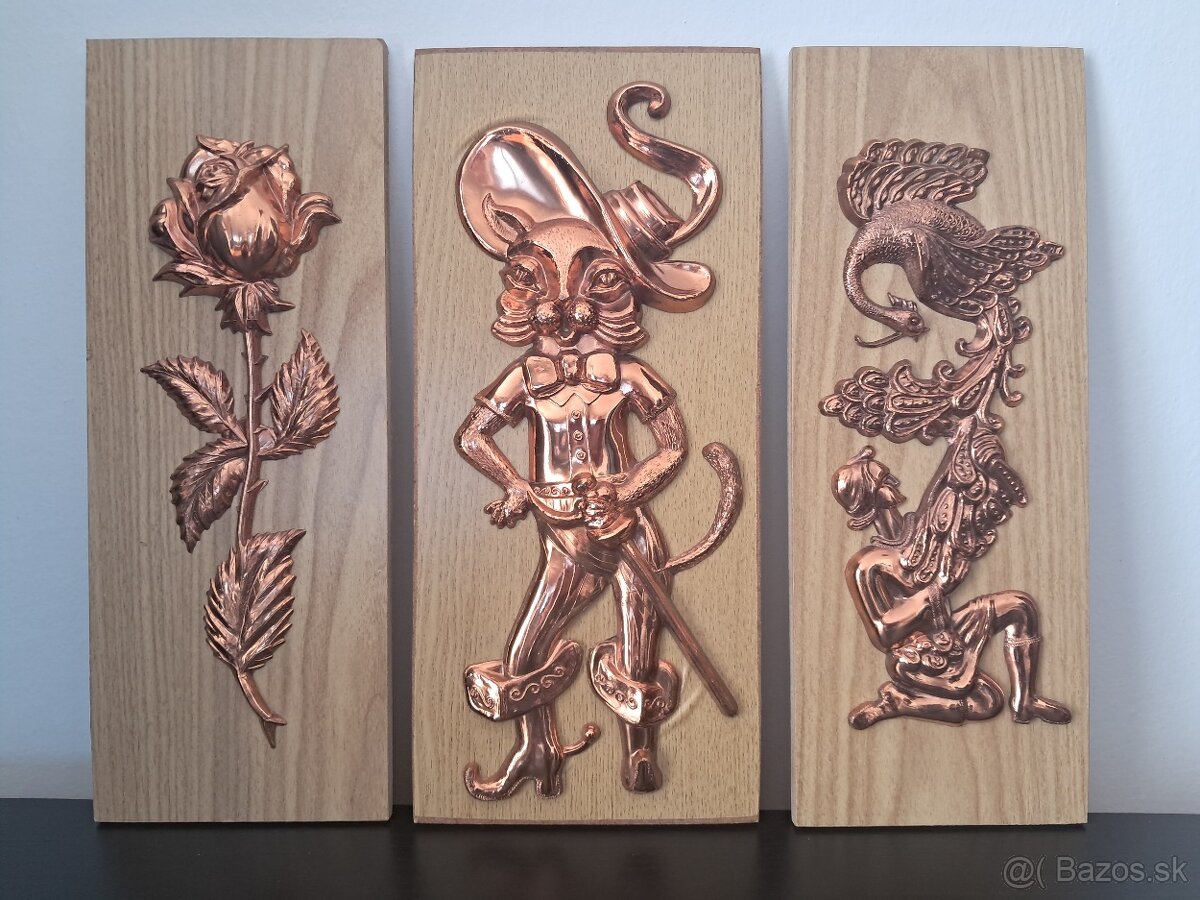 Ponukam na predaj 3 obrazy. Dva kusy o rozmere 35,5 x 13,5 cm a jeden kus a to kocur v cizmach o rozmere 35,5 x 16 cm + postovne. Predam aj jednotlivo 1 ks 15 eur. Spolu 3 kusy za 45 eur. Inzerat plati do zmazania.