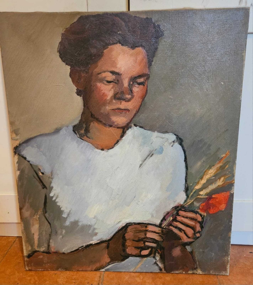 - Stav diela: Maľba je v pomerne dobrom stave, bez výrazného poškodenia. Maľba sa predáva BEZ RÁMU.