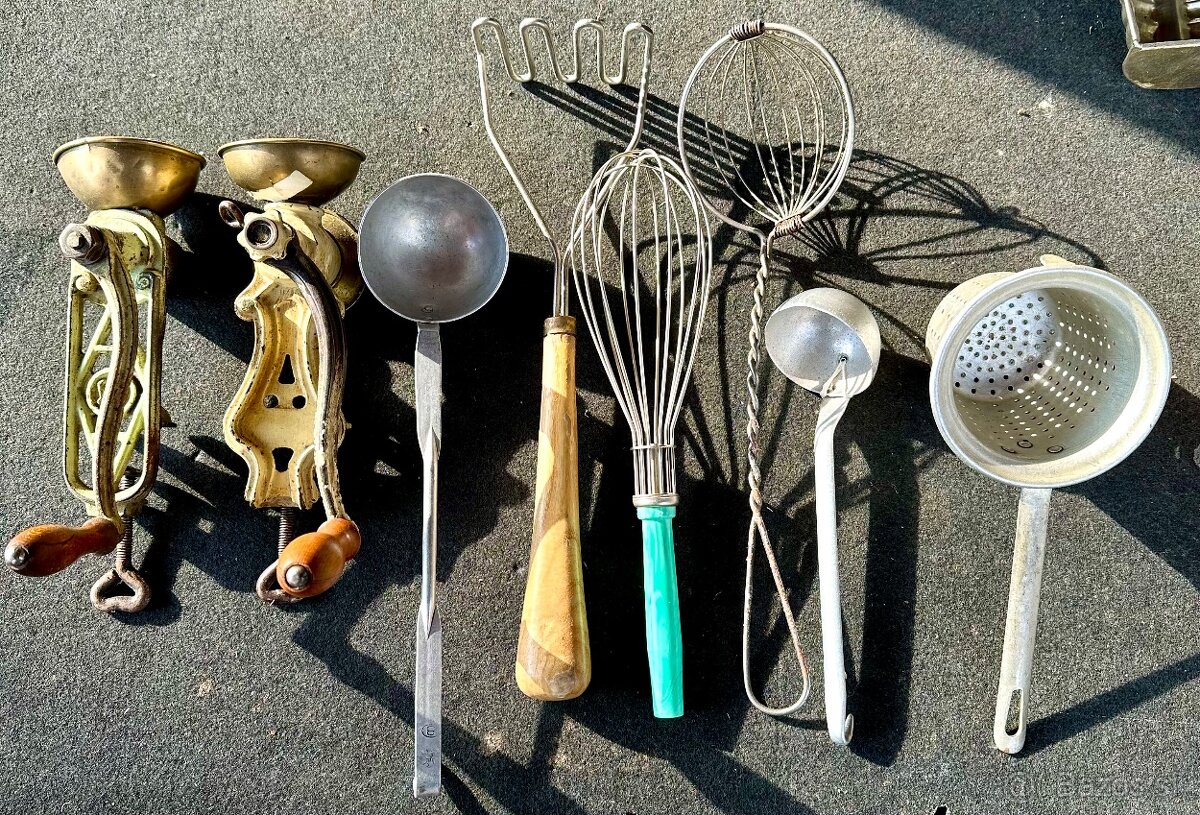 Staré nožíky, mlynčeky, injekcie, lúkoťové kolesá, kefka