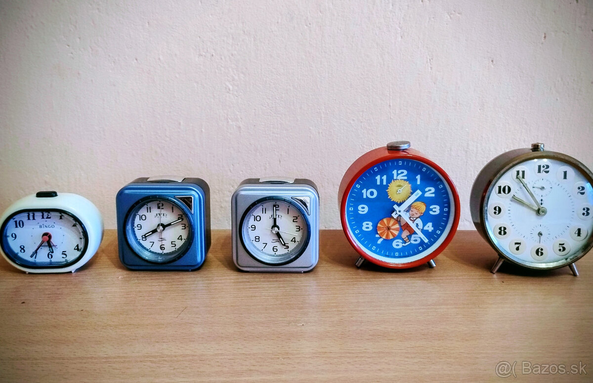 1ks budik mechanický - 4€. Bez modrého.