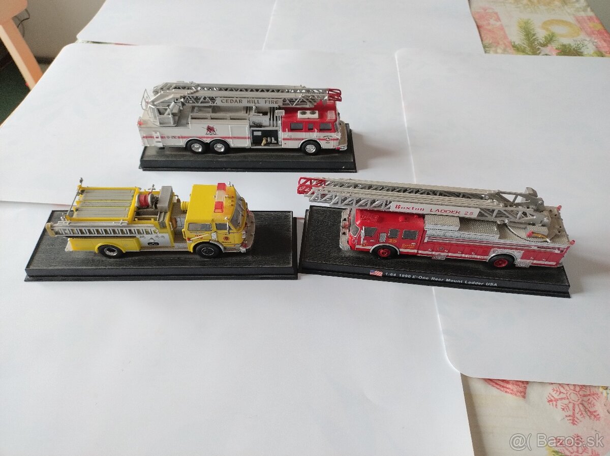 Predám 3ks modelov hasičských áut v mierke 1:64. Materiál: kov+plastové doplnky. Výrobca: Amercom S.A.