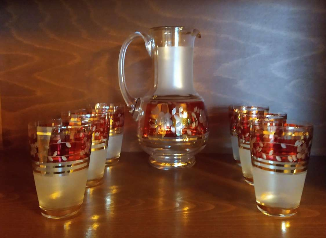 Predám súpravu, na vodu či nealko, listrované a ryté sklo, v zložení krčah a 6 pohárov.