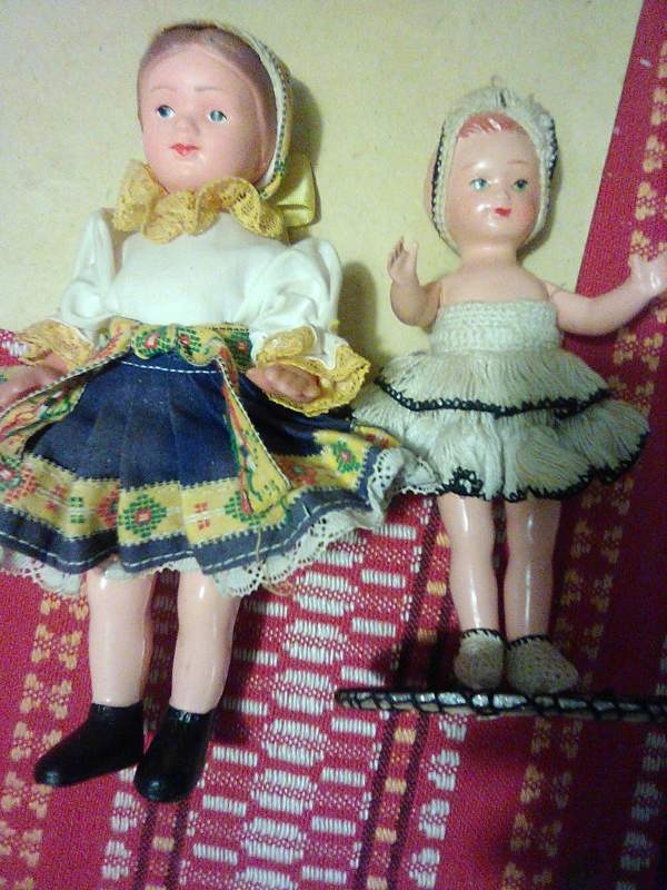 Zberateľovi ponúkam dve bábiky ešte z minulého storočia, jedna v štýle art deco-celuloidová- + druhá krojovaná.Telefon neplatný