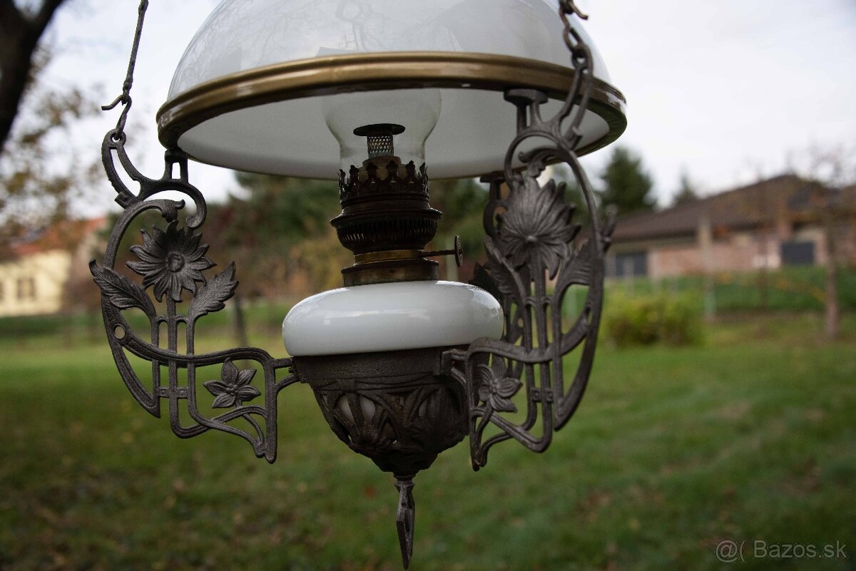 Predám starožitnú závesnú petrolejovú lampu - luster - výškovo nastavitelnú (s protizávažím).