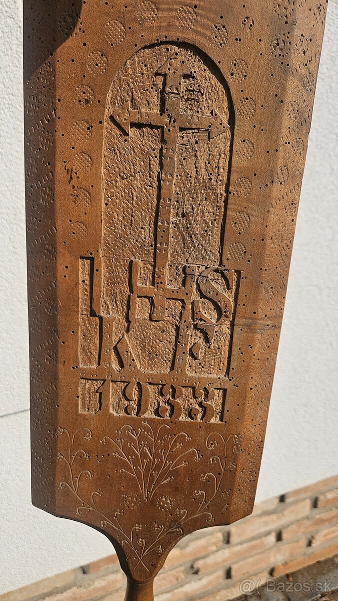 Predam krasne zdobenu dosku znacenu inicalami KF a rokom 1933.Hore je krestanska skratka IHS(iesus hominum salvator,jezis spasitel ludi)vyska cca 65cm