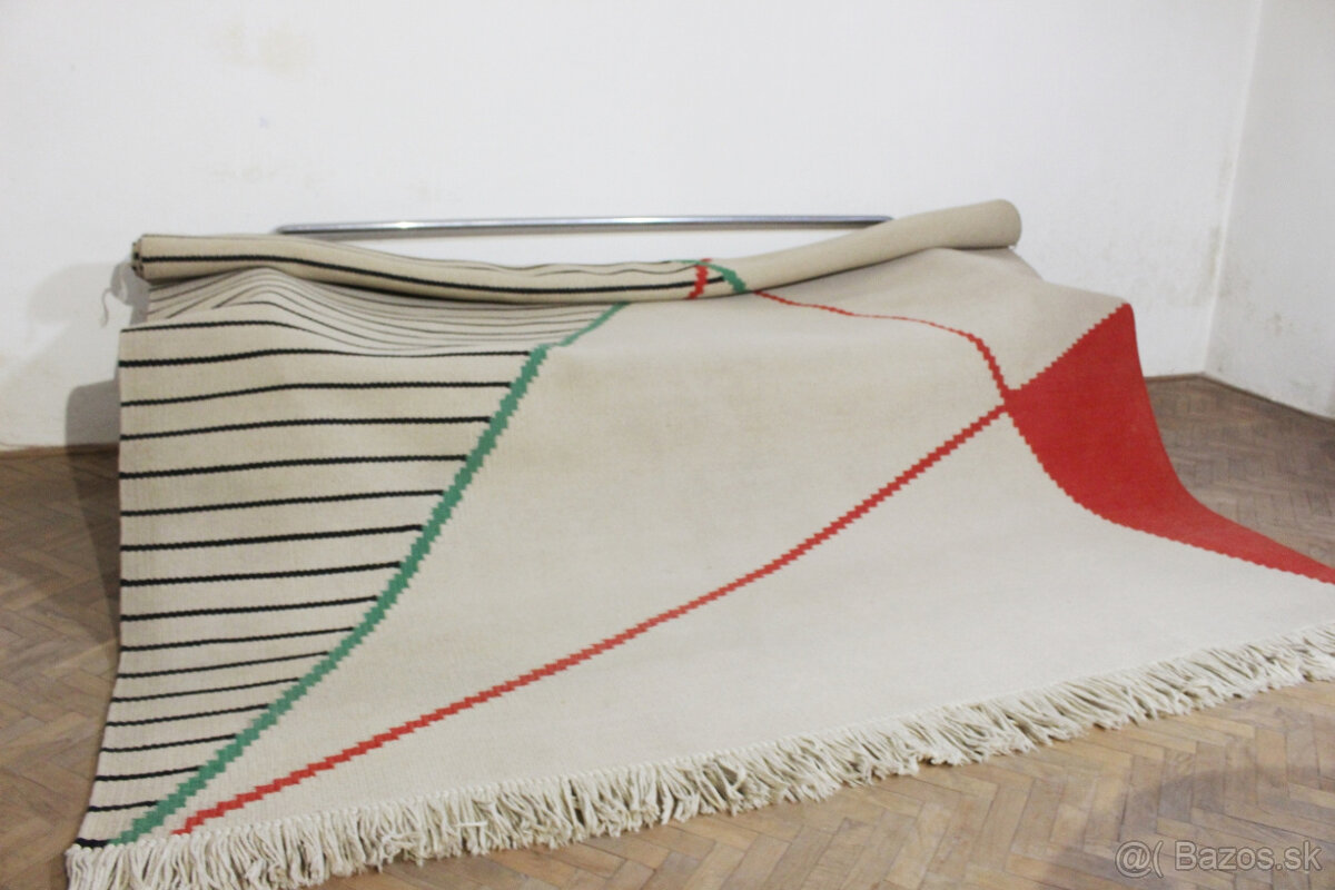 ponúkam na predaj krásny modernistický koberec,navrhnutý profesorom Antonínom Kybalom okolo roku 1950.ide o typický príklad československej avantgardy v období po druhej svetovej vojne.koberec je v top stave,strapce nie sú vytrhané.potrebné je iba profesionálne vyčistenie. rozmery koberca sú 400 x 255 cm.osobné prevzatie v okrese Topoľčany.na prípadné dotazy rád zodpoviem.prosím píšte na e-mail.ďakujem