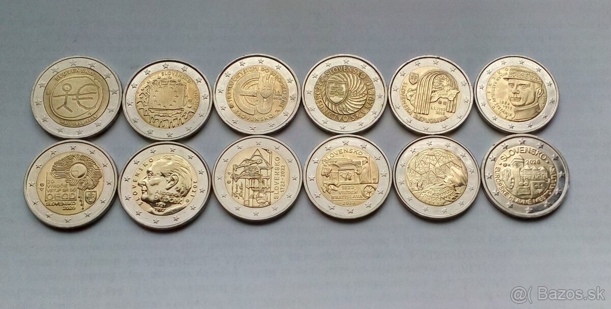 predám 12 ks 2 € pamätných slovenských mincí za 26 €. Osobne BN,PE,PD,TN,TR,MT,ZA.