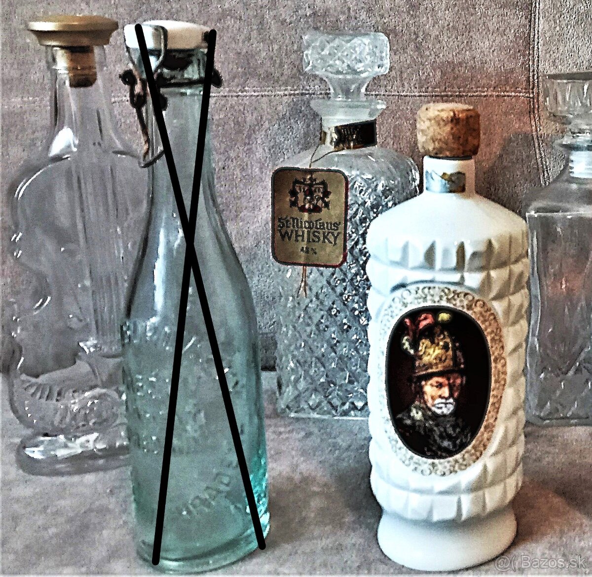 Ponúkam pre zberateľa tieto nezvyčajné a zaujímavé fľašky a dva hradné (zámocké) poháre.