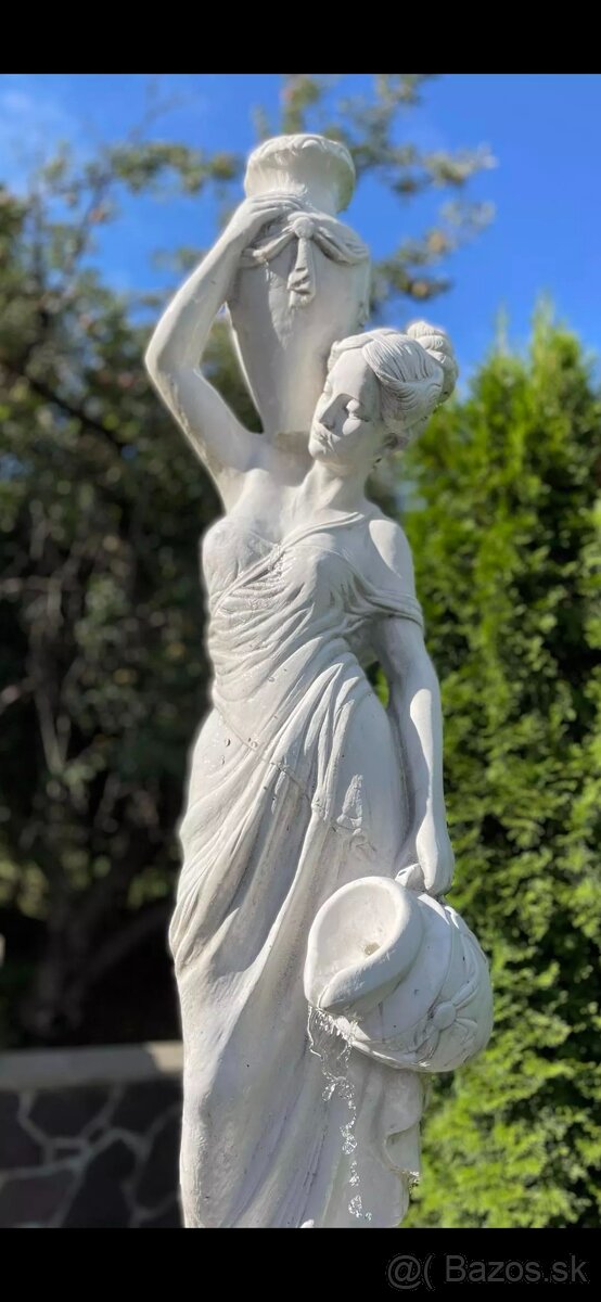 Predám bielu záhradnú fontánu z vystuženého umelého mramoru. Plne funkčná, krásny jemný zvuk žblnkotania vody. Funguje pohodlne na diaľkové ovládanie. Relaxačný prvok na Vašu terasu. Výška 205 cm a priemer 65 cm. Osobný odber Stará Turá. Nutná vlastná demontáž. Kontakt IBA mailom