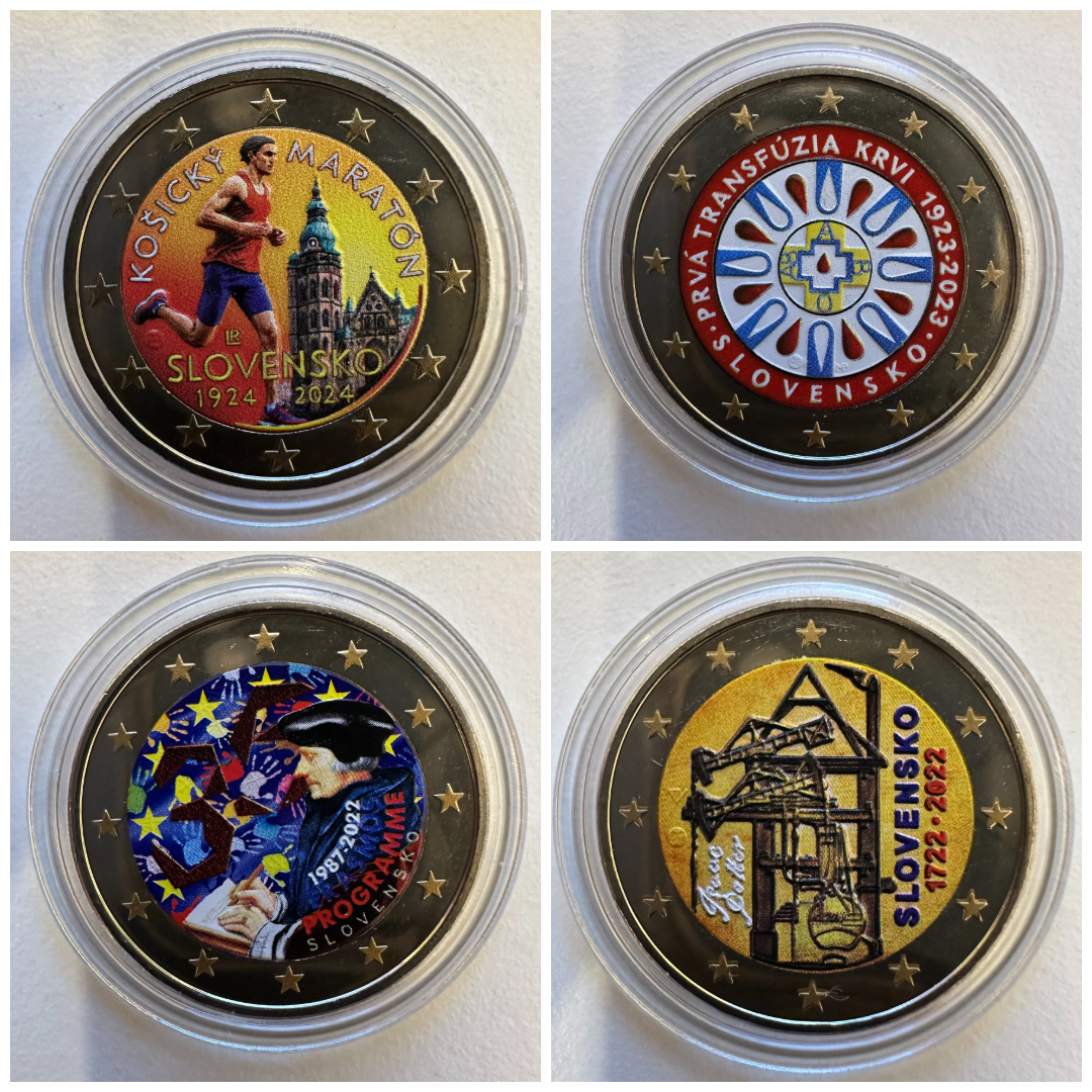 Ponúkam na predaj kolorované farebné 2 euromince zo Slovenska.