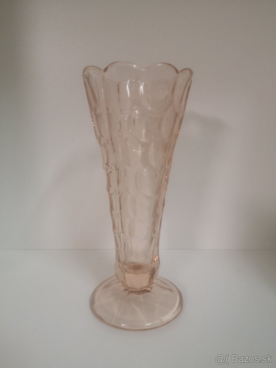 Sklenená, retro váza, ružové sklo. Výška - 20,5 cm. Stav používaná, bez oťukov, výrobná vada /viď foto/. Cena + poštovné. Pošlem po prijatí platby poštovného na účet. Pozrite si moje ponuky, možno Vás niečo zaujme. To čo je v ponuke je aktuálne.
