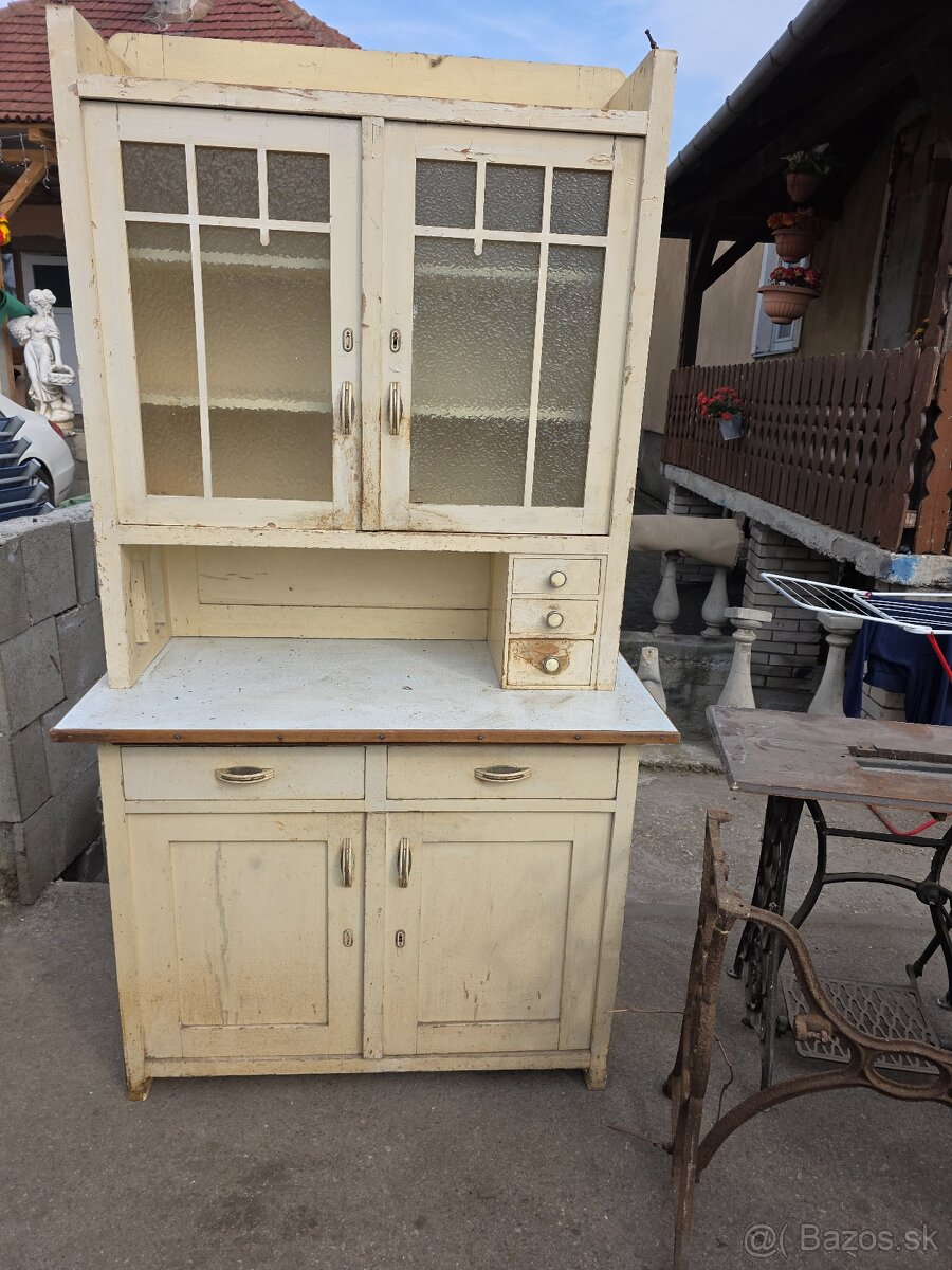 Predám starý kredenc cena 130 eur rozmery dĺžka 110cm šírka 56cm celková výška 2 m