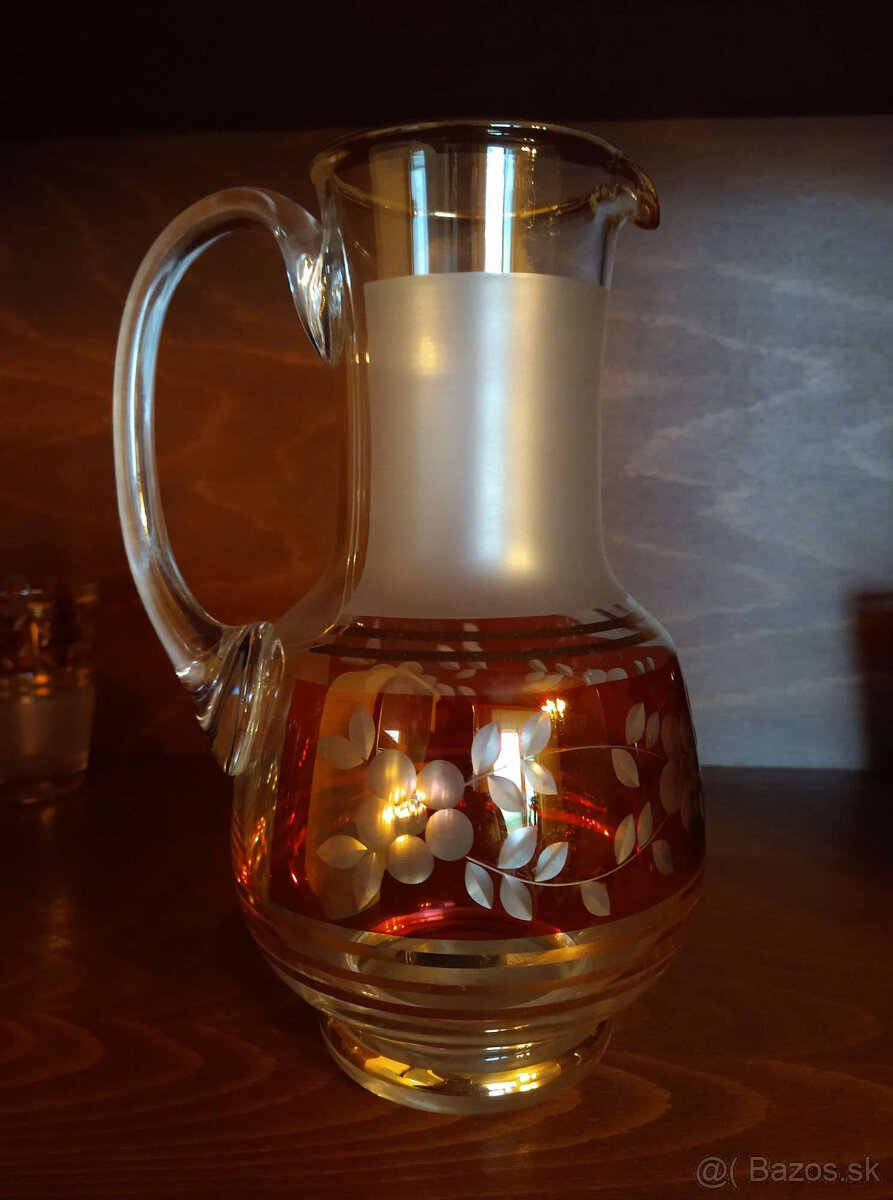 Predám súpravu, na vodu či nealko, listrované a ryté sklo, v zložení krčah a 6 pohárov. Bezchybný, vitrínový stav.