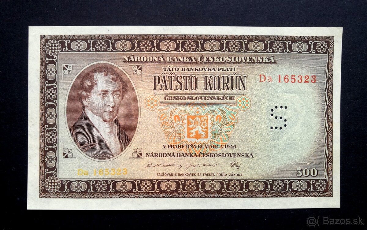 500 korun 1946,vzacna serie Da se vzacnou slovenskou perforaci "S" ve stavu UNC!!