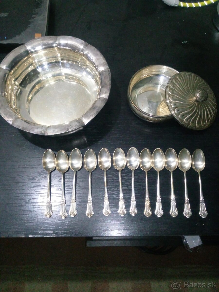 Predám z Talianska starozitne strieborne lyzičky 12 ks, cukorničku s vrchnakom a dozu. čistota 800/1000. Spolu 554gr. Investicne striebro. Predávam len spolu a nezjednávam.