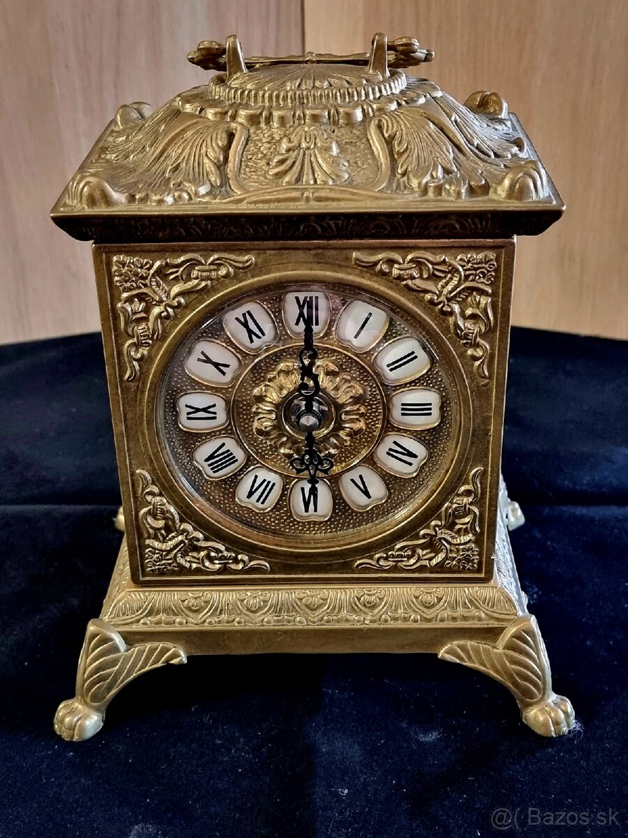 Predám mosadzné hodiny rozmery V26cm,Š19cm,HL12cm značka Artissimo,cena 80e, zberateľské žetóny cena za kazetu 35e, veľký marocky svietnik V 30cm Š20cm cena 50e