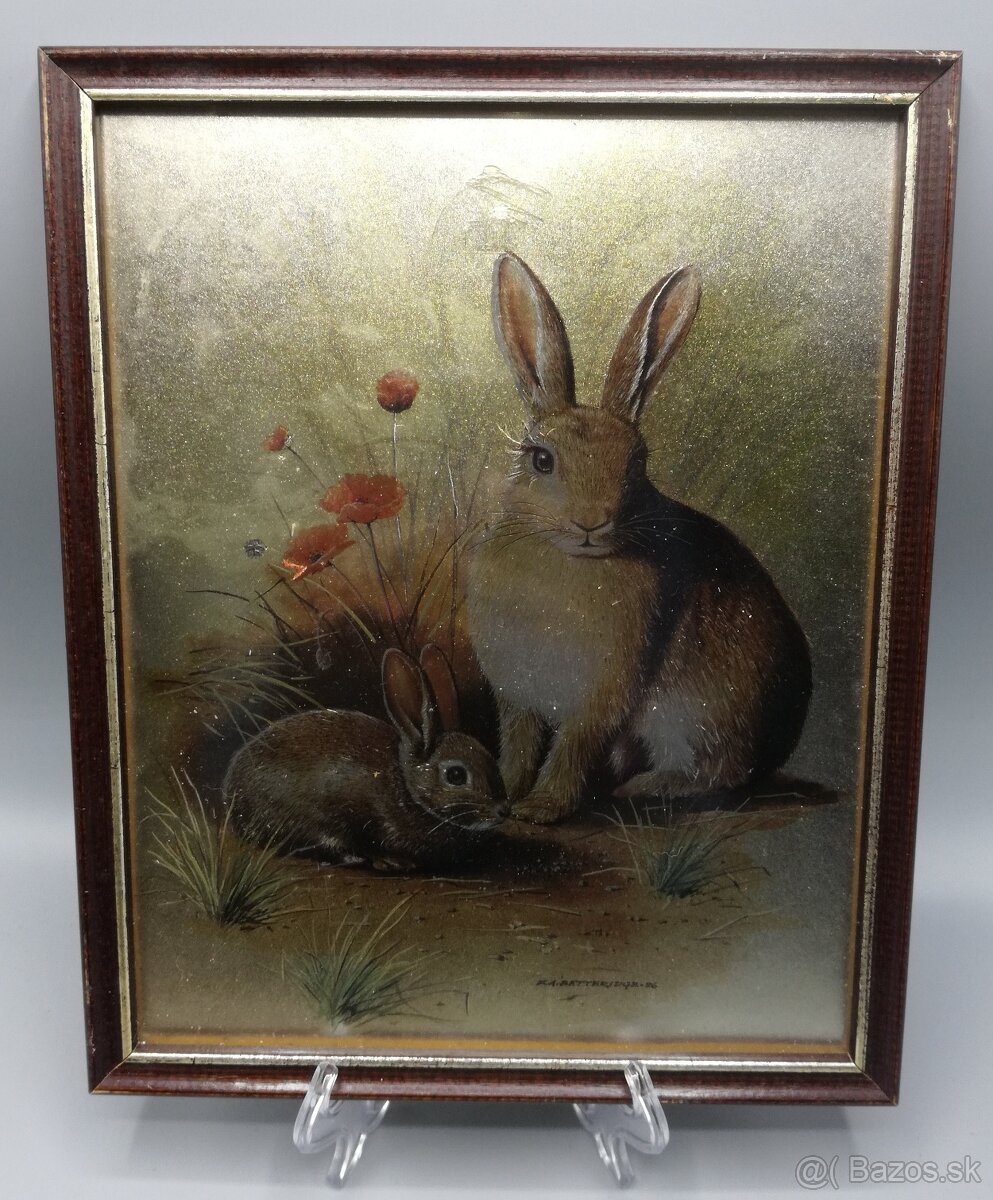 Ponúkam na predaj obraz zajačiky s perleťovým vzorom. Rozmery sú 27x22x1cm. Stav - viď foto. Cena je 2,90€ + poštovné.