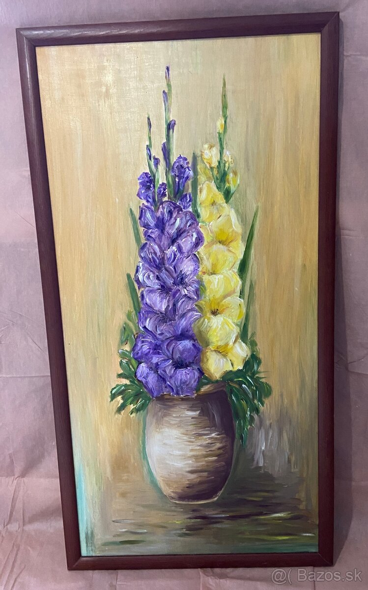 Gladioly vo váze, maľovaný obraz
