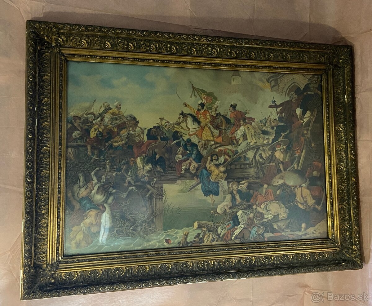 Zarámovaný tlačený obraz s výjavom bitky - [5.3. 2026]Ponúkam na predaj tlačený obraz s výjavom bitky. Vonkajšie rozmery sú 74x102 cm a vnútorné sú 53x80 cm. Stav - viď foto. Cena je 299,90€ + poštovné. Pozrite si aj moje ďalšie inzeráty.