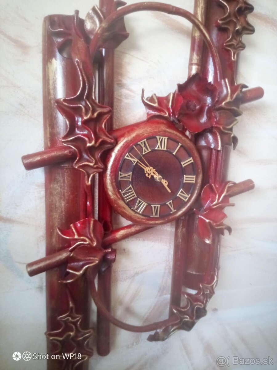 Funkcne nedavno renovovane novy nater a zlata patina hodiny su bamb.drevo a koza kombinacia