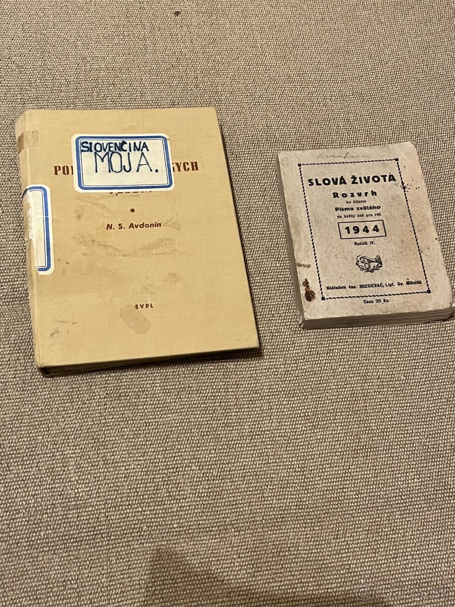 Predám poškodenú učebnicu - cvičebnicu pre žiakov 6.-8. roč základných škôl Slovenčina moja a evanjelický rozvrh ku čîtaniu sv. písma v roku SNP 1944. Cena za obe 12€