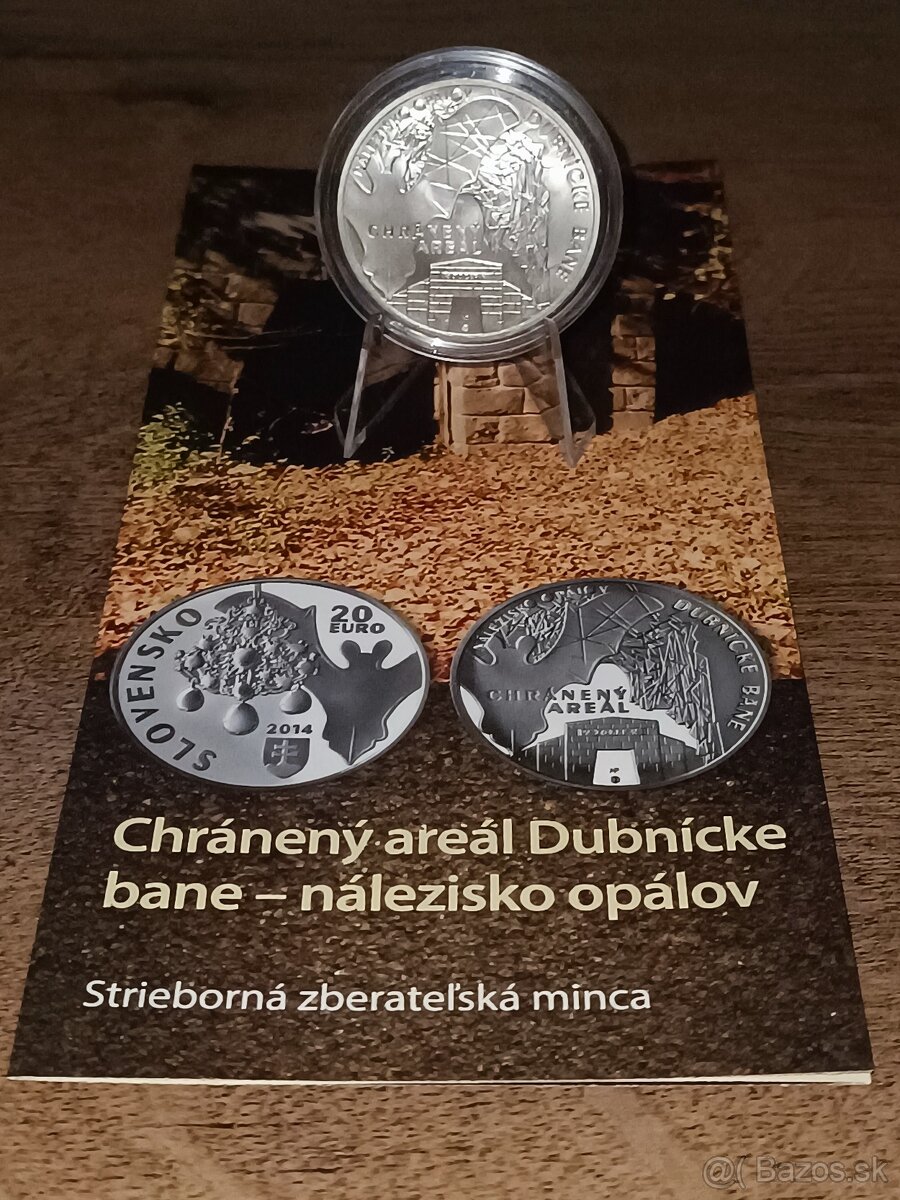 Predám 20€ striebornú mincu BK 2014 Chránený areál Dubnícke bane - nálezisko opálov v 100% stave s letákom.