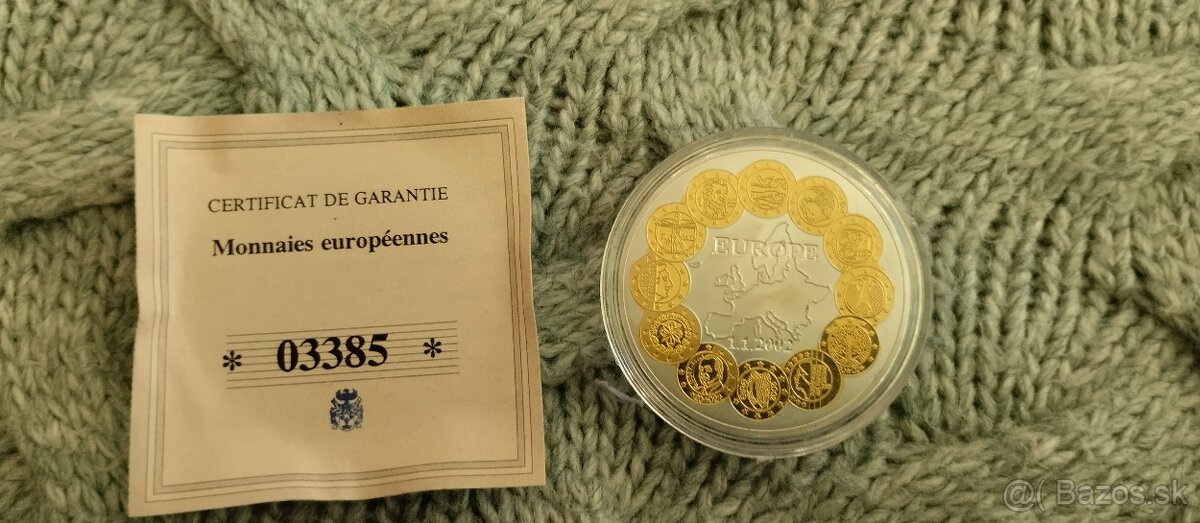 Predám pamätnú medailu vydanú na počesť zavedenia eura do hotovostného obehu, ktoré sa uskutočnilo 1. januára 2002.