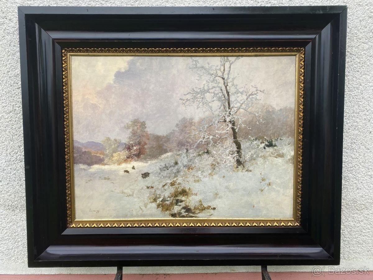 Obraz,olejomalba s polovníckou tematikou.
